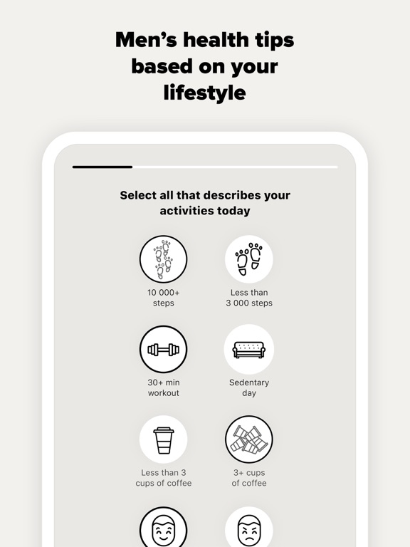 Increase men's health awareness with a large number of short topics, latest research and life hacks. All of those will help you discover new things about men's health and start implementing healthy habits into your lifestyle to achieve even better and more stable results.