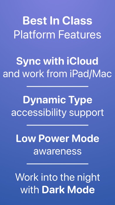 Dynamic Type accessibility support. Low Power Mode awareness for iPhone.
