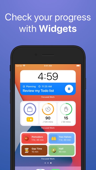 See your focus and current stage at a glance, with an always-on countdown timer.
