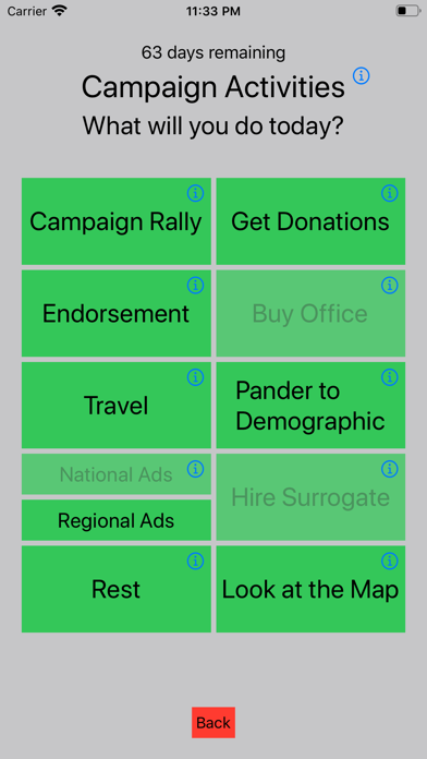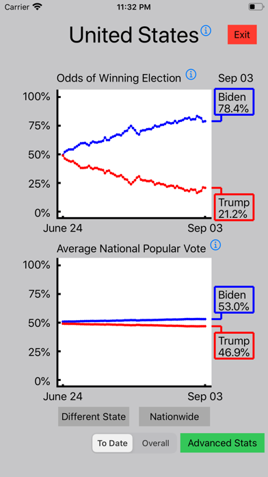 Election Accomplice is a two-part app providing an overview of the 2020 Election, and allowing you to enter the race as a candidate and try to win election yourself. The overview of the 2020 election provides an in-depth analysis of the election, allowing the user to investigate both the Democrat's and the Republican's odds of victory in any state, and in the whole of the United States. The election game allows the user to jump into the Election Race as either a Democrat or Republican, come up with a campaign ideology, run your campaign to the best of your ability, and watch if you win or lose on election night!