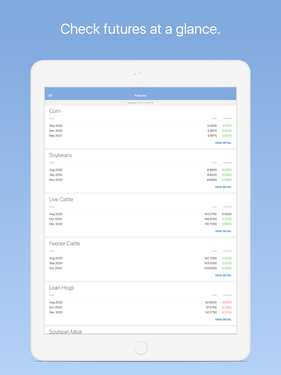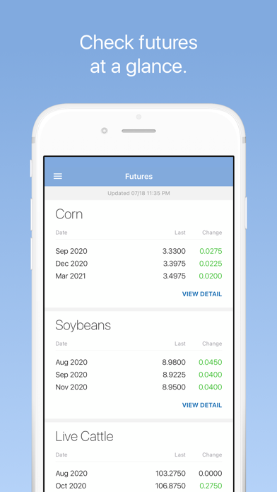 Futures: See Grains, Feed, Livestock, and Ethanol futures listed in order of your preference
