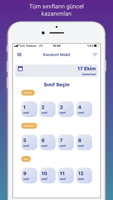 Yenilenmiş Kazanım Mobil uygulaması ile 1.sınıftan 12.sınıfa kadar güncel müfredata göre hazırlanmış ders planları sınıf defterine kazanım yazmanızı kolaylaştıracak.