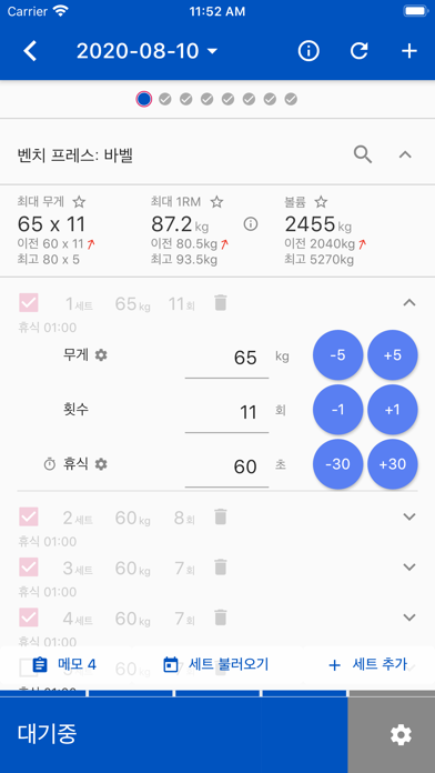 - 세트 체크박스: 계획과 실제 완료를 구분