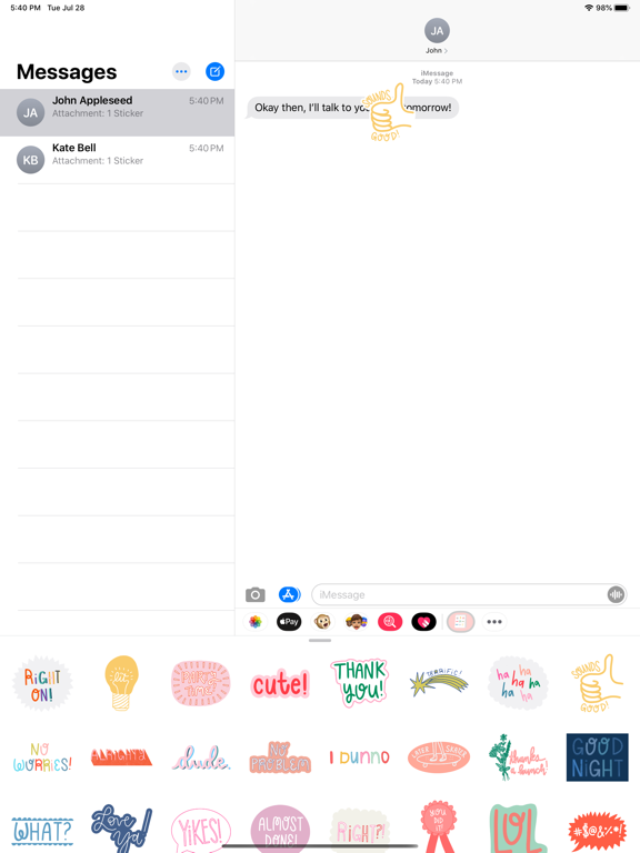 With illustrated messages such as ‘Terrific!’, ‘Right On!’, and ‘Cute!’, this pack is a great way to add a splash of color to your texts, or simply help get your message across in a fun way.