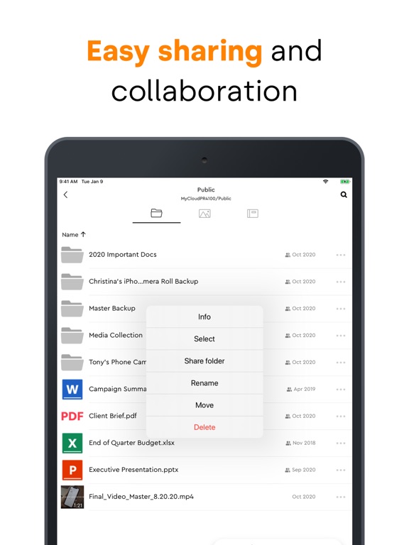 - Share high-res photos and videos, a single file, or an entire folder using your smartphone or tablet