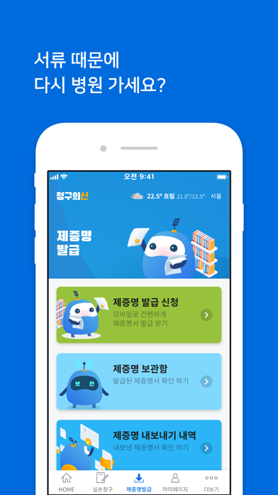 실손보험청구와 제증명 발급을 편리하게 할 수 있는 모바일 어플리케이션 입니다