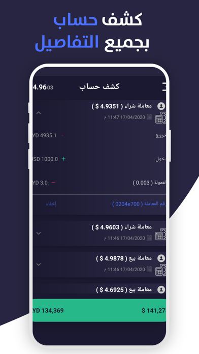 كما بتطبيق ديلار كشف حساب لكل عميل ويمكنك معرفة المعاملات التي تم بيعها او تم شرائها