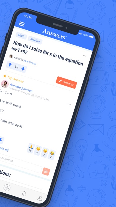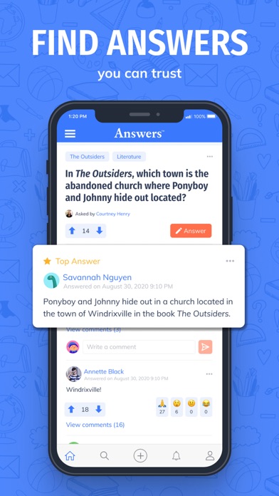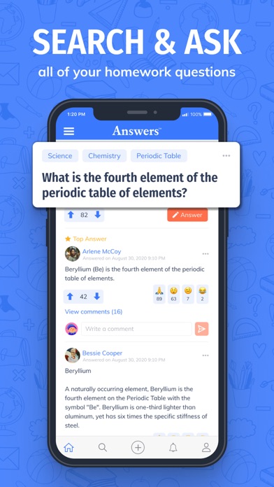 Answers is the ultimate app for completing your homework. From science to world history to math, Answers has over 100 million homework questions and answers ready for you - for free! Simply search or ask any question and find the answer, instantly!