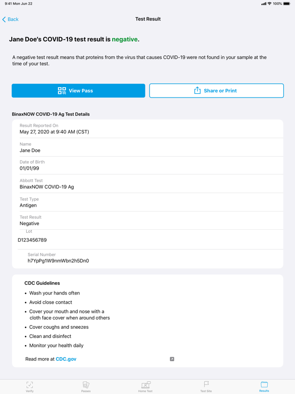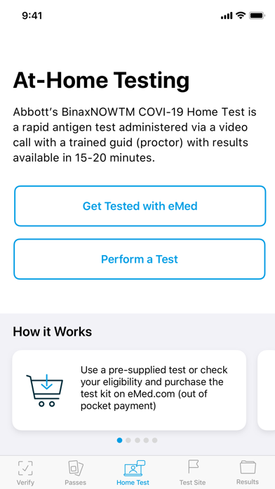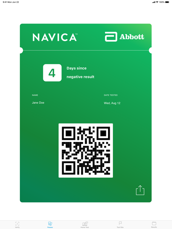 NAVICA allows you to receive and store encrypted results from select Abbott rapid COVID-19 tests and manage your NAVICA Pass. The NAVICA app will display a digital NAVICA Pass via a QR code, similar to an airline boarding pass, for anyone who has received a negative result using the BinaxNOW COVID-19 Ag Card test. Sharing your pass with NAVICA-enabled organizations such as employers and schools verifies authenticity of your negative COVID-19 test results.