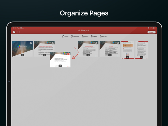Organize Pages - Reorder or extract existing pages or insert blank pages, photos, scanned images, or even entire PDFs.