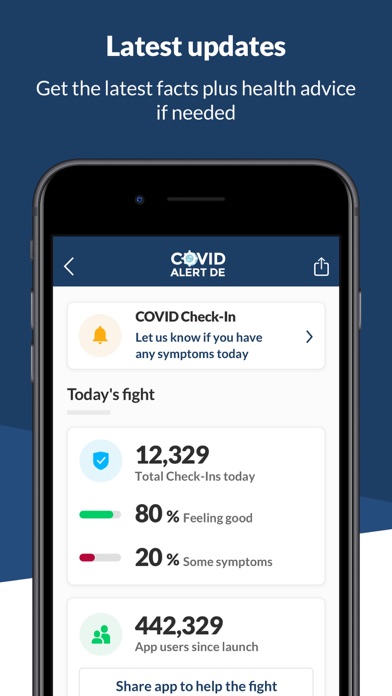 Use this app for 1 minute a day to make an important contribution to the fight against coronavirus. Protect yourself, your family, your community and the most vulnerable in society. Encourage everyone you know to download and use the Covid Alert DE app where possible.