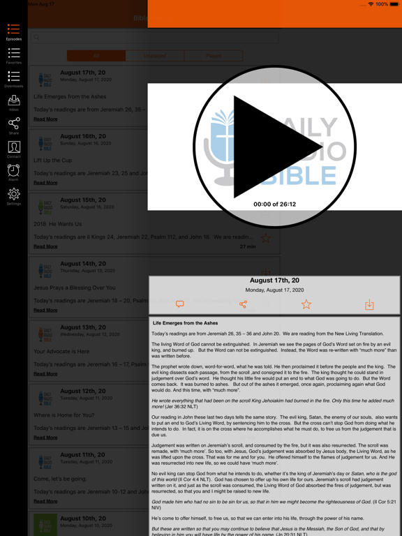 The Daily Radio Bible is a one year Bible reading experience, with daily podcast readings through the entire Bible. Hunter Barnes, your Bible reading coach helps guide you into an experience with God's love, as you encounter Jesus through the pages of the Bible. Join us on a journey of discovery and transformation.