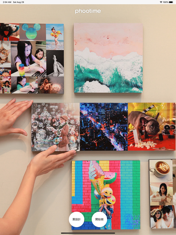 《Phootime 無框畫》可協助你將喜愛的相片製作成各式的印刷品,或是裱上相框增加質感,包括無框畫、木框畫、藝術燈箱、金屬櫥窗相框、輕展畫,你還可把照片製作成掛條,當成年曆佈置在家中。