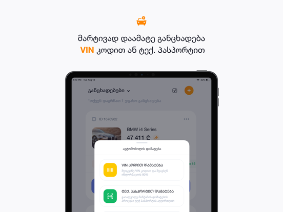 • Create a listing using VIN Code or Vehicle ID card scanner.