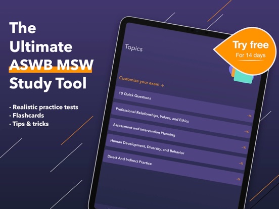 *This app has been updated to the Association of Social Work Boards (ASWB) latest Master in Social Work (MSW/LMSW) guidelines.