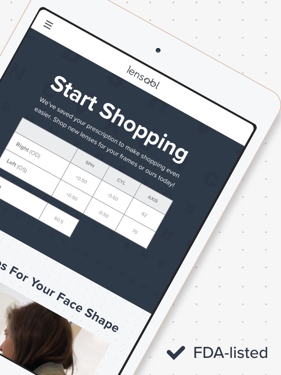 Lensabl is the one-stop-shop for all of your vision care needs online. We sell replacement lenses for existing frames, brand new frames from our Everyday Eyewear Collection, and contacts. Free shipping is included with every order!