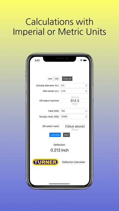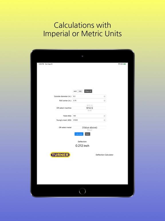 Turner Machine Deflection Calculator avoids the hassle of tables and number-crunching, guaranteeing a fast, accurate result every time!