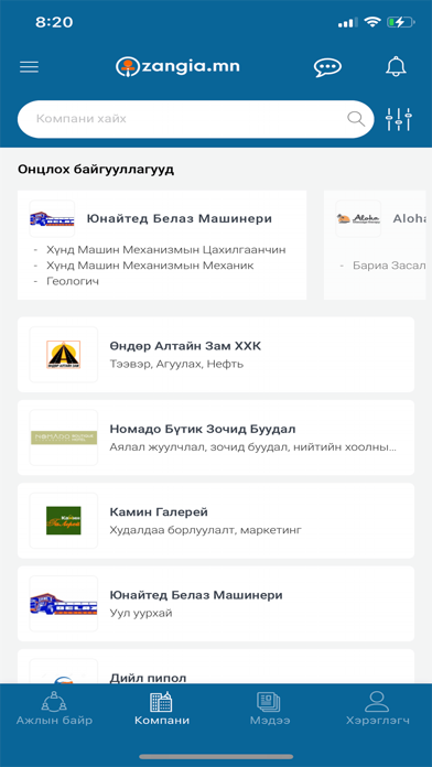 Zangia.mn нь Монголын хөдөлмөрийн зах зээлд ажил олгогч болон ажил горилогч нарт бүрдүүлэлт, сонгон шалгаруулалт, хувь хүний хөгжил, карьер хөгжлийн чиглэлээр цогц үйлчилгээ үзүүлэгч үндэсний компани юм. Бид 2009 оноос хойш үндсэн үйл ажиллагаанаас гадна “Хүний нөөцийн сонгон шалгаруулалт”, “Хөдөлмөрийн зах зээлийн судалгаа”, “ERP систем хөгжүүлэлт” “Академи”-ийн онлайн сургалт, шалгалт зэрэг хөдөлмөрийн зах зээлд чиглэсэн олон ажлыг амжилттай хийж байгаа билээ.