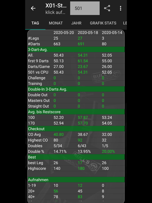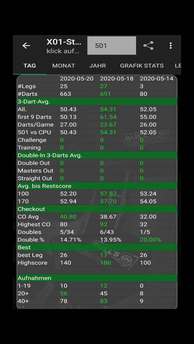 Keep track with your progress in miscellaneous variants and bring your gameplay to the next level by detecting your problems and optimizing your play. My Dart Training supports you in doing so.