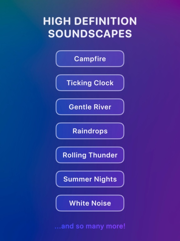 Allow soothing soundscapes and peaceful melodies to guide you into an uninterrupted slumber. Pick from our wide selection of premium soundscapes, including a cozy campfire, rolling thunder in the distance, a ticking clock, and so many more you'll love.