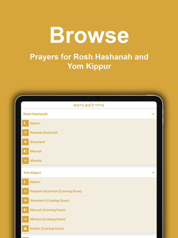 Learn to lead prayers during Rosh Hashanah and Yom Kippur. This app includes all relevant parts of the Rosh Hashanah and Yom Kippur Machzor (Nusach Ashkenaz), along with a voice over by YU Rosh Yeshiva Rabbi Jeremy Wieder.