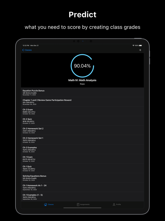 You can easily create classes and manage the assignments within them. With this, you’ll be able to see what you need to score on an assignment to get the grade you want to achieve. No need to try and remember what the homework was when you can easily keep track of all the assignments you need to complete! Managing your school life has never been easier.