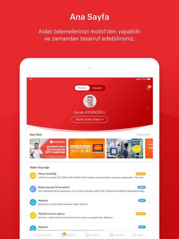• İş Talebi ve Takibi: Örneğin, musluğunuz bozuldu. Bunun için iş talebi açıp ardından takibini de gerçekleştirebilirsiniz.