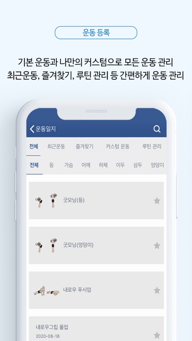 - 즐겨찾기, 최근운동, 커스텀, 루틴관리 및 최근 운동/세트 정보 불러오기