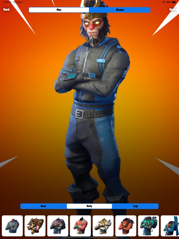 Combine heads, bodies and backgrounds to generate the most original Skins you can imagine.