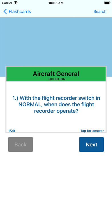 •Choose any aircraft system from a drop down menu and easily study technical questions about the airplane.