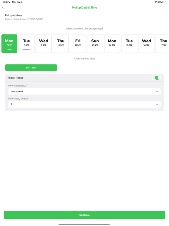 Schedule a pickup or delivery for laundry, dry cleaning, or laundered shirts - 7 days a week. Choose from our convenient evening time slots.