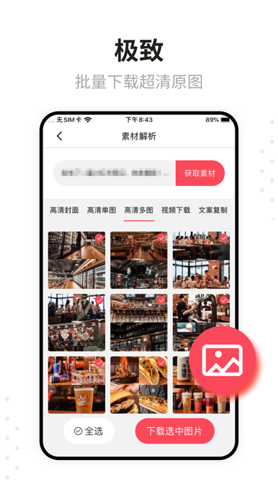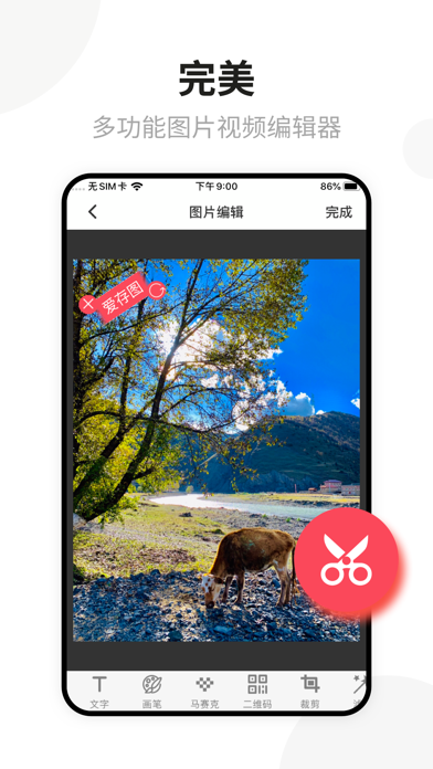 爱存图是一款辅助用户搜索下载视频图片的工具。只需复制其它App中的链接并打开爱存图,即可自动识别解析出高清原图和原视频,并提供了一键保存多张高清原图、高清原视频等功能。同时还提供了强大的图片和视频编辑器,可以对图片和视频进行加水印、裁剪、局部马赛克、涂鸦、滤镜等功能。