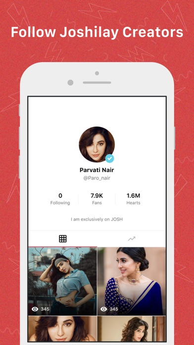 Download Josh to become part of a creator community where you can take trends into your own hands by uploading, sharing and promoting all the content YOU love! Afsha Shah, Jubin Shah, Vishal Parekh, Eshan Masih, Oye Indori, Deepthi Sunaina, Ashu Reddy, Athulyaa Ravi are just some of your favourite top creators who’ve got the Josh, now it’s your turn! Learn from them to build your own empire!
