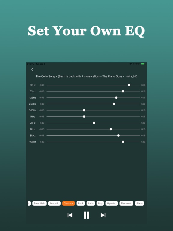 Whether playing music through headphones or speakers, the equalizer effect is great and professional.