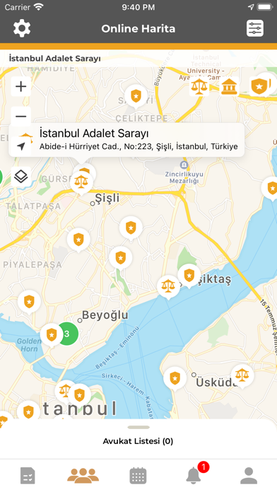 Bazen anlık olarak bir Adliyede, polis merkezinde ya da baroda bir meslektaşınıza ihtiyacınız olabilir. İstediğiniz lokasyonda hangi avukatların olduğunu görebilir, kendileriyle iletişime geçebilirsiniz.