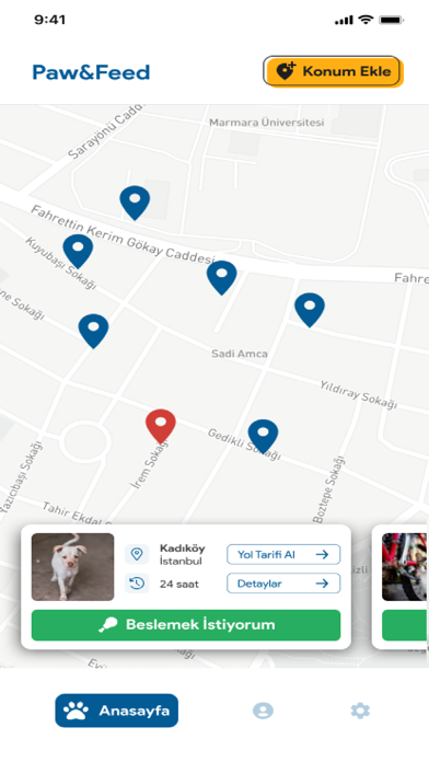 PAW&FEED sokak hayvanlarının besleme noktalarını lokasyon tabanlı bir mobil uygulama üzerine taşıyarak noktaların dijital takibini görsel ve metinsel olarak tutan bir platformdur.