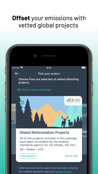Offset unavoidable emissions — Your footprint will show that some of your emissions are unavoidable or extremely hard to reduce (after all, you can’t expect to live without heat!). But where reduction isn’t feasible, offsetting your impact is. We’ll show you projects and causes that aim to remove equivalent carbon from the atmosphere, and you can invest in them to go carbon neutral.