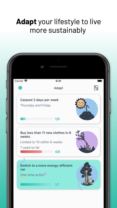 Build eco-friendly habits — Based on your footprint, we’ll show you a few simple lifestyle changes you can make to reduce your carbon impact. Build and sustain greener habits, track your progress over time, and make a real individual difference in the fight for climate change.