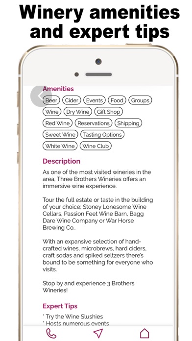 * Sort and filter wineries by amenities - visit wineries that suit your palate