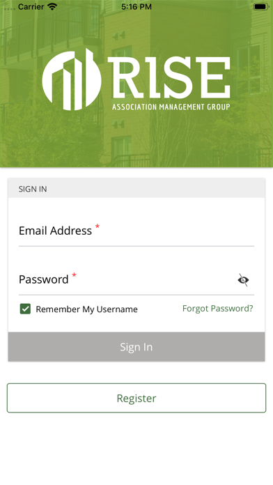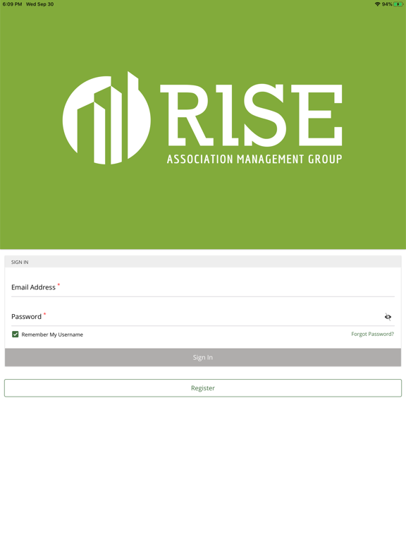 If you already have a login through to the association’s website through Rise, you can log into the Rise App using the same email address and password you use for your association website. If you do not have a current login to your association site, simply click the register button and submit your information.
