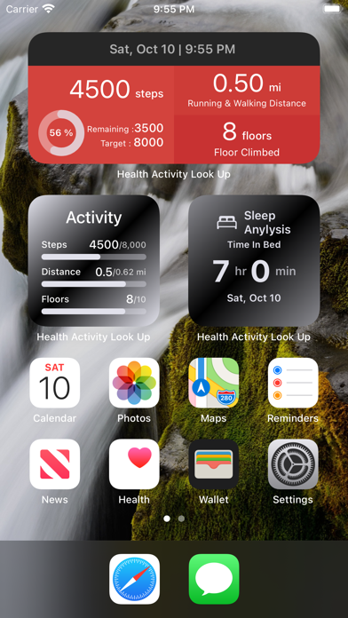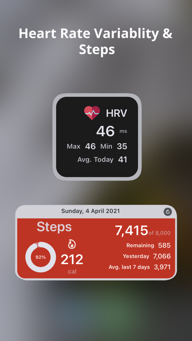 Health Widget will count your steps,floor,distance,calories,heart rate & variability,and sleep. Motivate to reach your daily target.