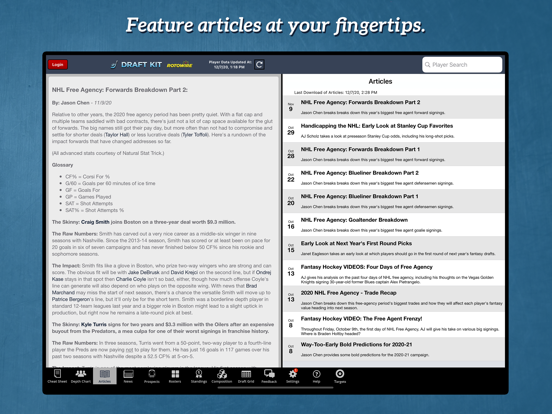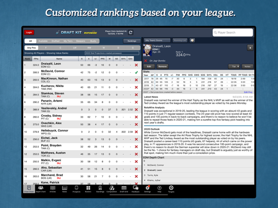 Imagine getting a cheat sheet that adjusts to fit your league settings, allows you to mark players as taken to keep track of your draft AND provides up-to-date player news. That’s exactly what the Fantasy Hockey Draft Kit '20 from RotoWire can do for you. It’s a one-stop shop for everything you need to dominate during your draft.