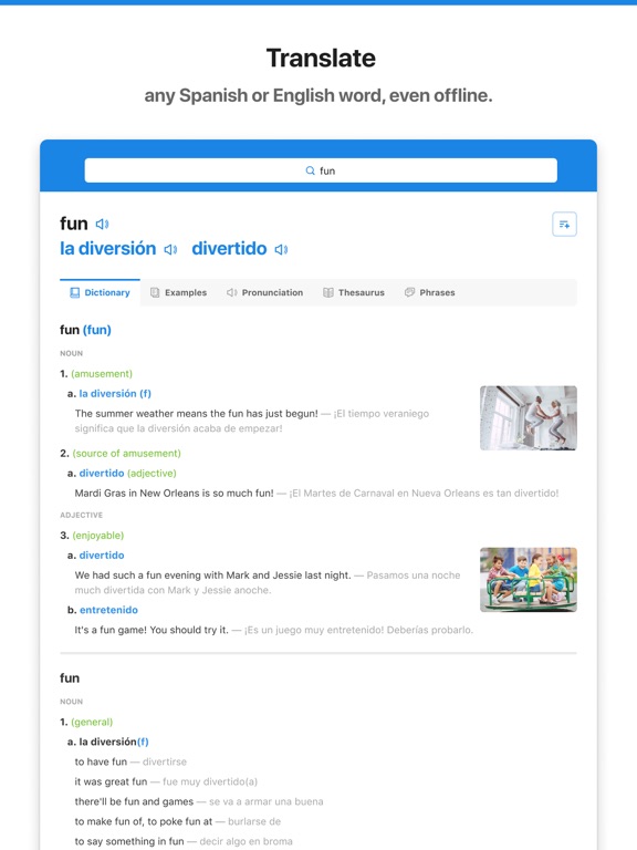 Join English learners around the world on inglés.com, featuring the highest quality Spanish-English dictionaries available offline, interactive vocabulary quizzes, and native speaker audio. Whether you’re looking for a fast and accurate translator or an offline dictionary, inglés.com has your back.