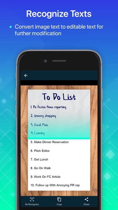 The OCR Text Recognition lets you recognize text from images then edit texts or share text to other apps.