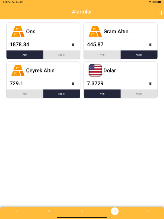 Anlık altın fiyatları, canlı döviz kurları, kripto para, hisse senetleri, borsa gibi piyasaları takip edebilir, istediğiniz enstrümana özel alarmlar kurabilir ve tüm haber portallarından gelen haberleri okuyabilirsiniz. Döviz Kurları tüm piyasaları sade ve anlaşılır arayüzü ile canlı olarak takip etmenizi sağlamaktadır.