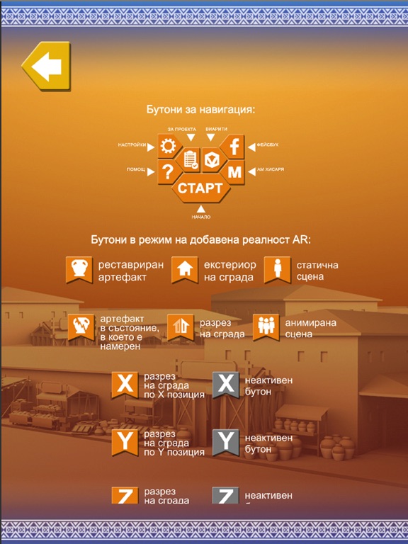 HisAR Heritage is an application that uses augmented reality (AR) technology. It is an artistic and tourist product, entirely focused on a modern form of visual art. The application gives you the opportunity to get a digital piece and artefact from the ancient city, to capture the spirit of the particular period, and to feel and virtually be present at the metamorphoses of Hisarya. Three of the key cultural sights of the city are presented and you learn interesting facts about the chosen archaeological site; you see its digital reconstruction and section, you become witness of a themed scene from the Roman age and have a digital artefact found at the site.