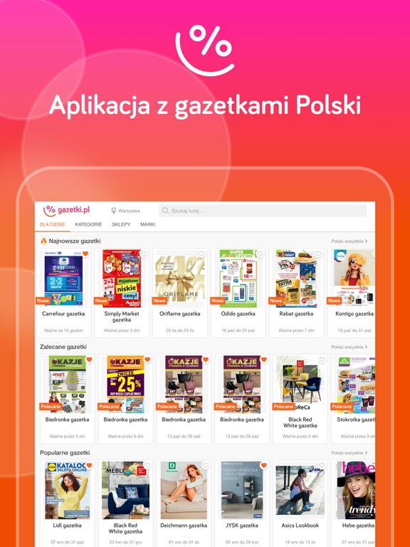 - Przeglądaj gazetki według kategorii, sklepu lub tematyki