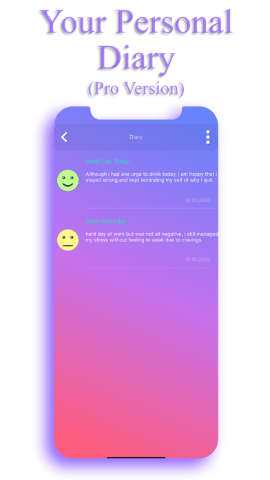 - Let the app help you decide your next step after a relapse by recommending a certain action based on your previous quitting data (Pro Version).