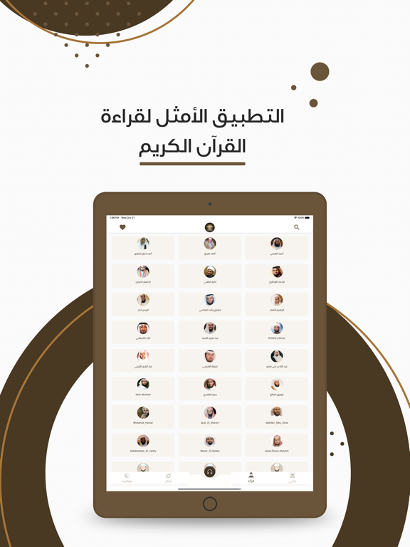 -         امكانية تحميل واستماع القرآن بصوت 120 قارئ وأكثر وذلك لغرض تحسين القراءة او للتأكد من نطق الكلمات بصورة صحيحة .