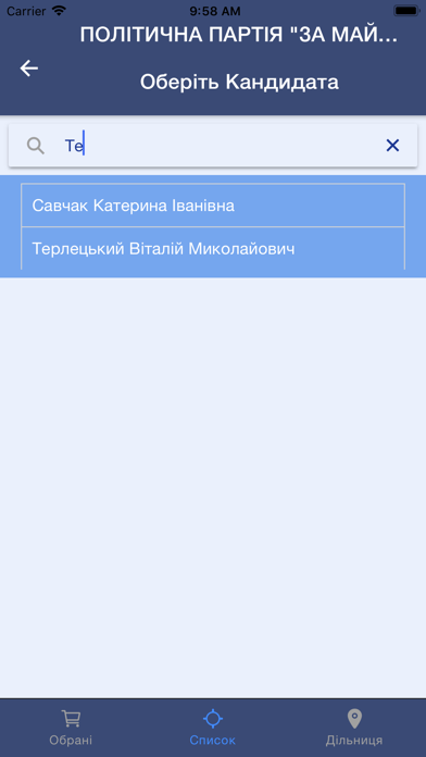 3. Аплікація для Новояворівського ОТГ дозволяє наперед відмітити собі кандидатів. Іформація залишиться тільки на вашому пристрої. І буде видалена під час того як ви видалите аплікацію